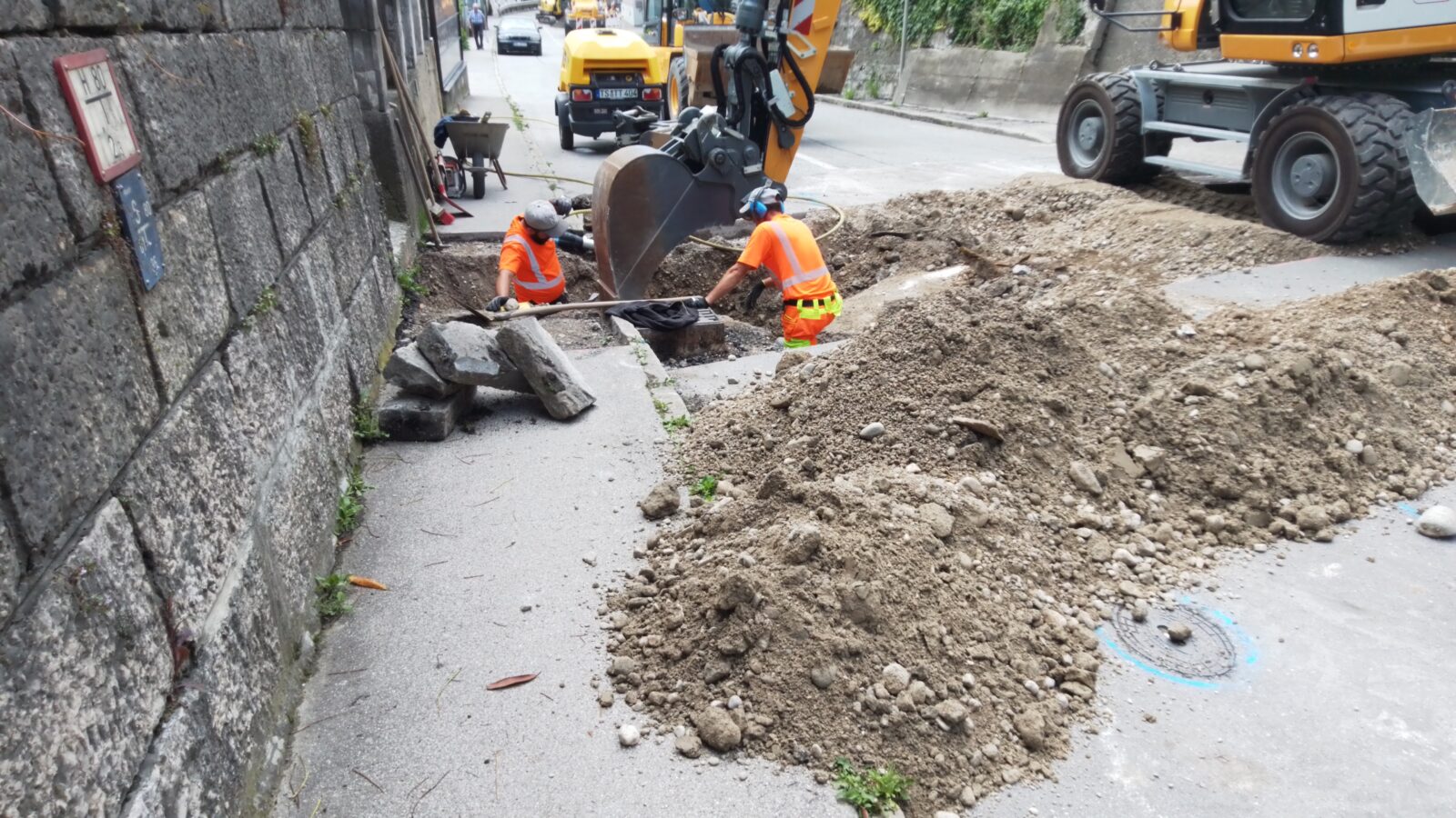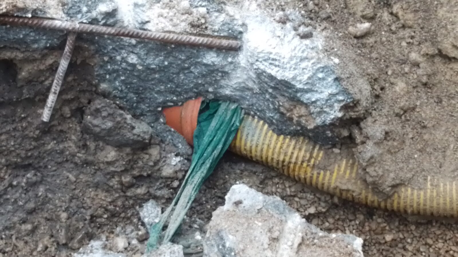 Jahrzehnte vergingen, bis mein Verdacht sich bestätigte, Regenwasserablauf völlig absurd installiert, mein Haus wird und wurde unterspült, siehe auch folgendes Bild unten!Abwasserrohr wurde durch die Belastung ( mittig B 20 Freilassingerstr.) auseinandergezogen, Jahrzehnte waren damit die Anwohner, vor allem ich, mit Wasserschaden belegt, die Risse an den Häusern, wie Begrenzungsmauern bestätigen die Unterspülungen diesbezüglich!